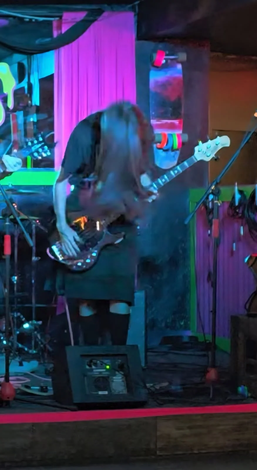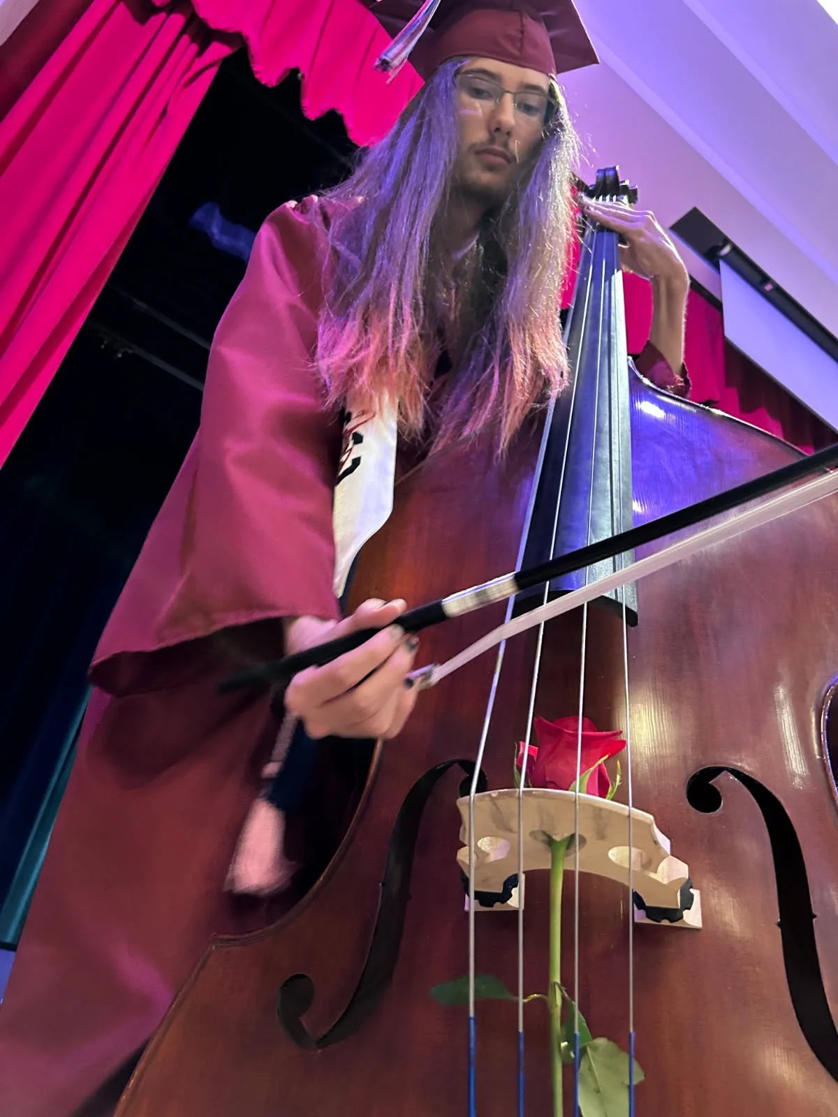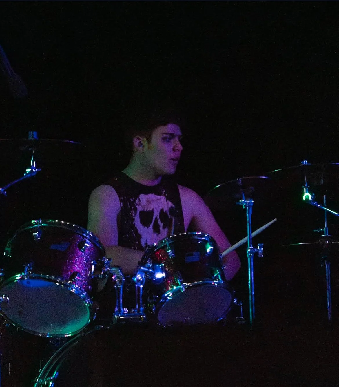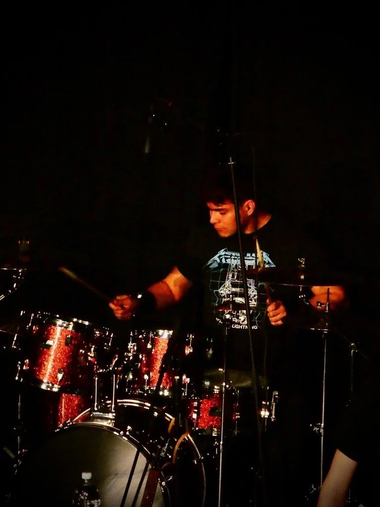 I first started my music journey in middle school where I played trumpet and later percussion. When covid hit I took a break from music but later during high school I got a random drive to play my dads bass and I haven't been able to put it down since. Sophomore year I joined the music program at school where I met some amazing people that are now my fellow bandmates. Even though I played a wide variety of instruments I always stuck with bass and meeting these people made me strive to be a better musician. It wasn't until junior year when I joined marching band and winter percussion where I really got to develop my skills.